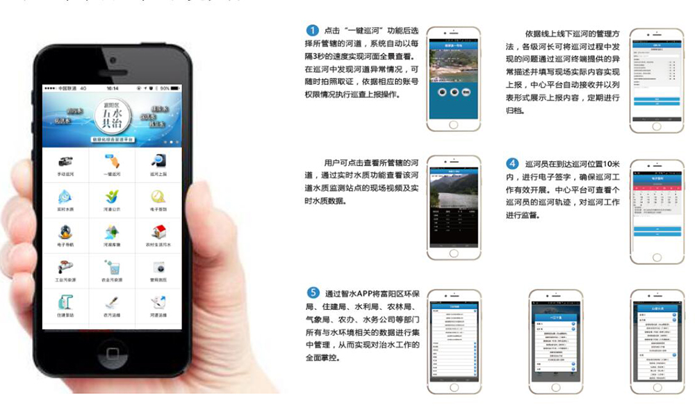 項目內容:富陽區“五水共治”信息化綜合管理平臺由河長管理、五水監控、富陽治水APP三個系統組成,將全區工業污水、農業面源污染、農村生活污水、城市污水泵站、河道水質、山塘水庫、防洪堤壩、排澇站、水文站及城市供水管網、節水項目等全部納入統一的智能實時監控,開啟“互聯網+治水”的新模式。