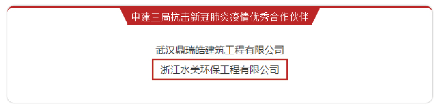 11月22日,中建三局抗擊新冠肺炎疫情表彰大會暨先進事跡報告會在武漢召開,中建三局黨委書記、董事長陳文健攜先進個人和干部職工代表共計4200余人在主會場和252個視頻分會場參加會議。太陽成集團tyc環境旗下全資子公司浙江水美環保工程有限公司(以下統稱“太陽成集團tyc環境”)獲評中建三局抗擊新冠肺炎疫情“優秀合作伙伴”稱號。